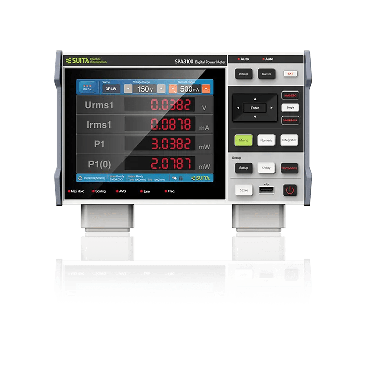 SPA3100 offers a wide range of voltage measurement, compact size, and favorable price point, making it an ideal power meter for power consumption test stand and, production line, and test bench. SPA3100 also provides real-time waveform display, waveform recording, harmonic analysis and other features, allowing R&D engineers to conduct power-related testing on equipment with severe harmonic pollution.
