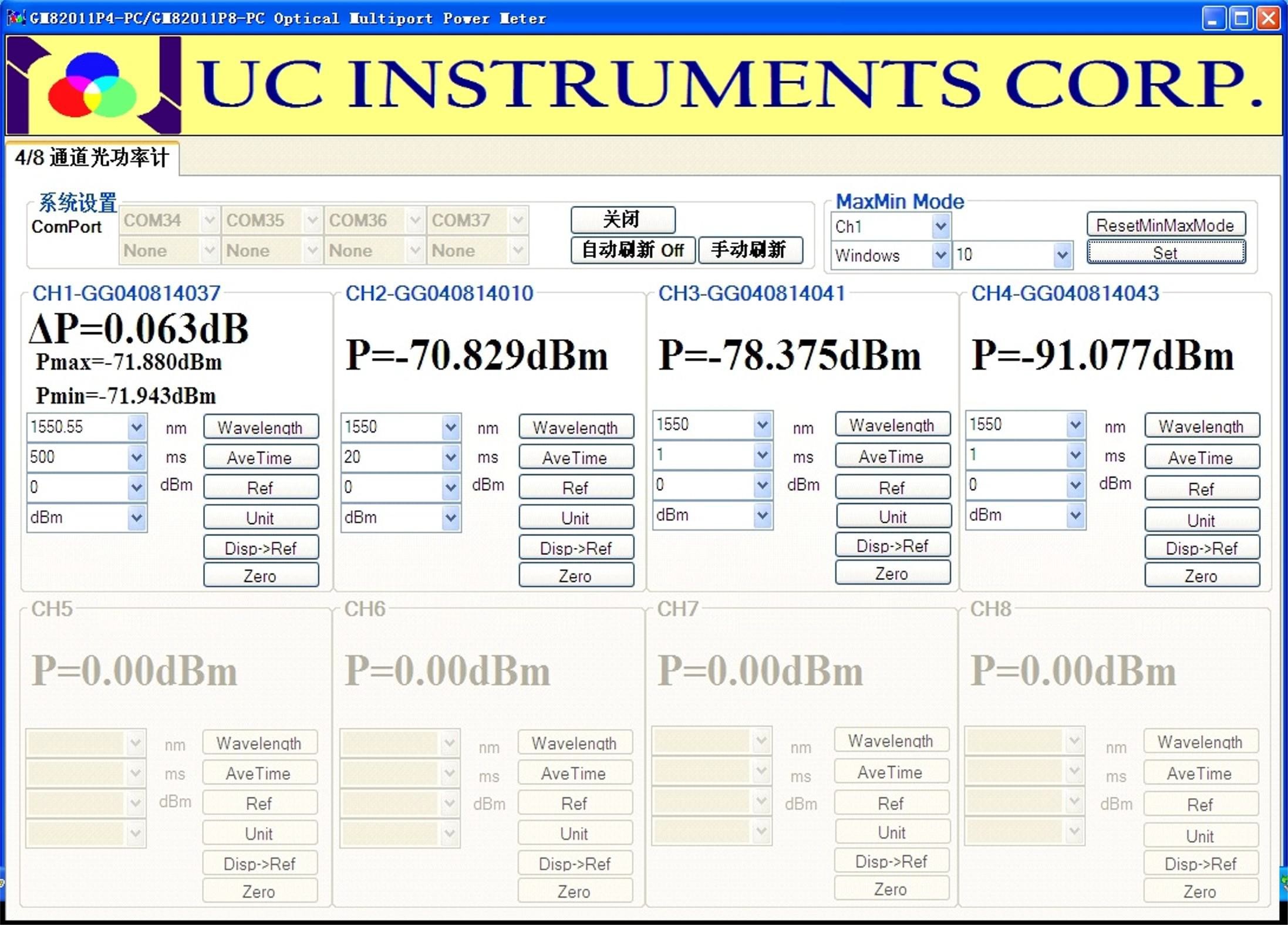 UC INSTRUMENTS UC8724 4 CHANNEL OPTICAL MULITIPORT POWER METER are PC control multiport passive components power meter test system and offer superior performance for the test of multi- channel DWDM, WSS, ROADM, AWG & PLC components and modules, optical amplifiers, DWDM system and other general purpose of multiport fiber optical test and measurement applications. The system can be integrated with tunable laser source, optical attenuator & PDL controller provides a high performance passive components and modules automatic test system platform.
